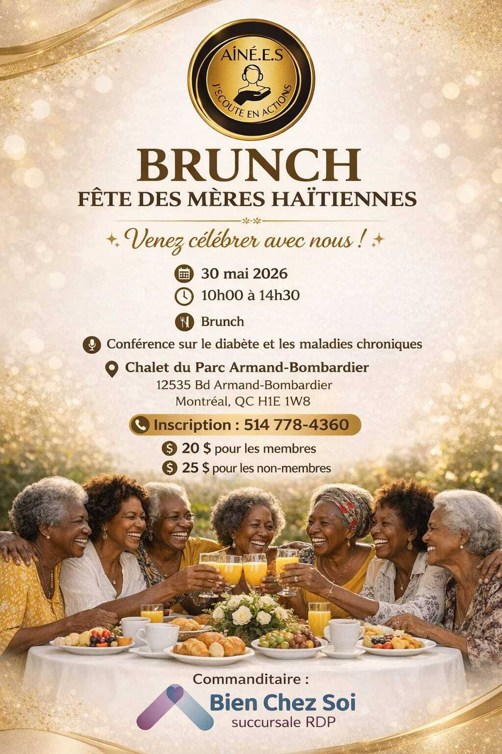 L’organisme Aîné.e.s J'écoute en Actions (AJEA), en collaboration avec Bien Chez Soi (RDP), vous invite chaleureusement à son Brunch annuel de la Fête des Mères Haïtiennes.